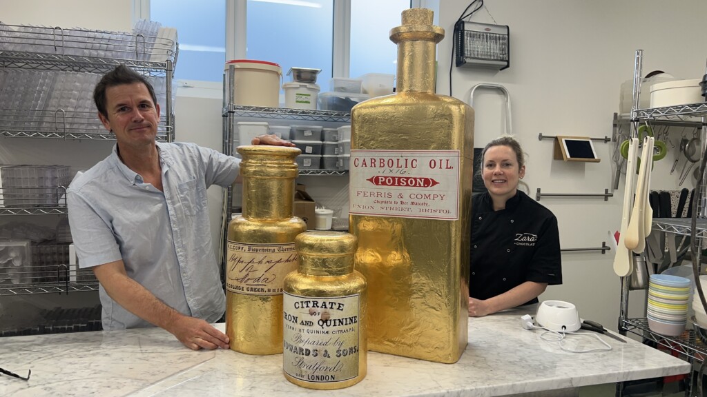 One to two-metre replicas of the objects have been created in fairly traded chocolate by the award-winning Bristol chocolatier Zara’s Chocolates, wrapped in gold foil and displayed with the original pieces in these much-loved attractions. Objects include a giant chocolate button, Concorde, a ship’s wheel, medicine bottles and Alfred the Gorilla!
